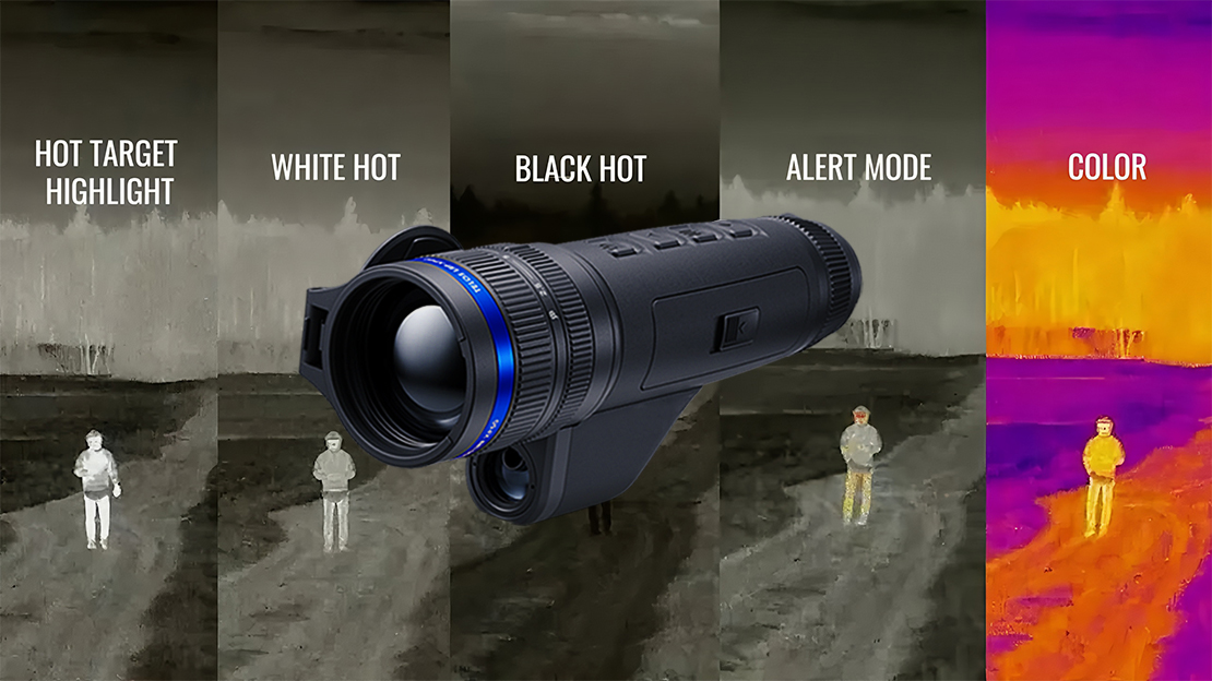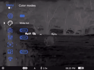 Es stehen fünf Farbpaletten zur Auswahl. Zusätzlich zu den gängigen Farben „Weiß heiß“, „Dunkel heiß“, „Rot heiß“ und „Farbe“ haben wir auch eine Palette für „Hot Target Highlights“ entwickelt. Diese Farbpalette erleichtert Benutzern das Auffinden ihres Ziels dank des hohen Kontrasts zwischen Hintergrund und Ziel. Sie verfolgt automatisch die heißesten Stellen in der Szene und erkennt Ziele schnell.