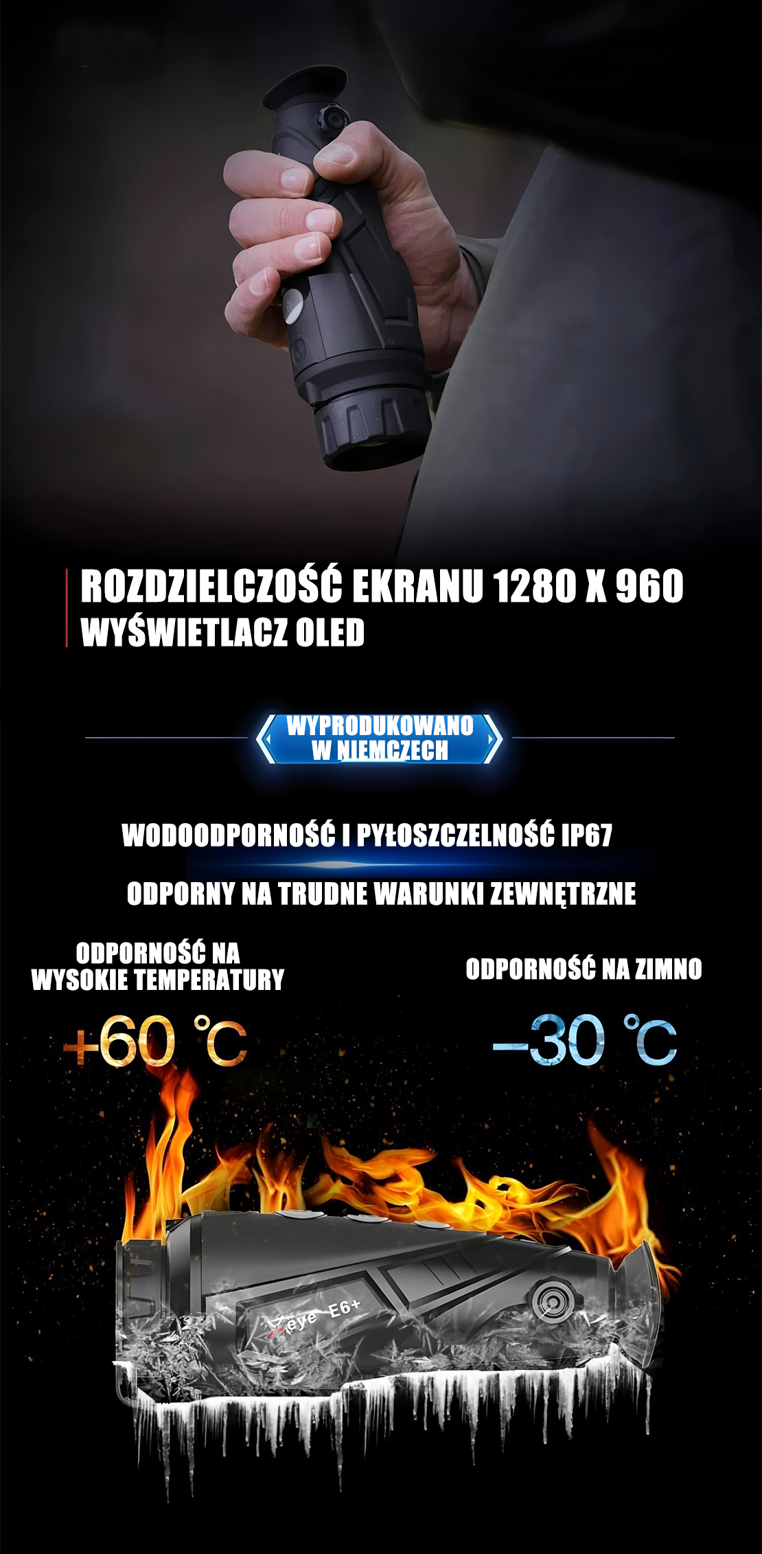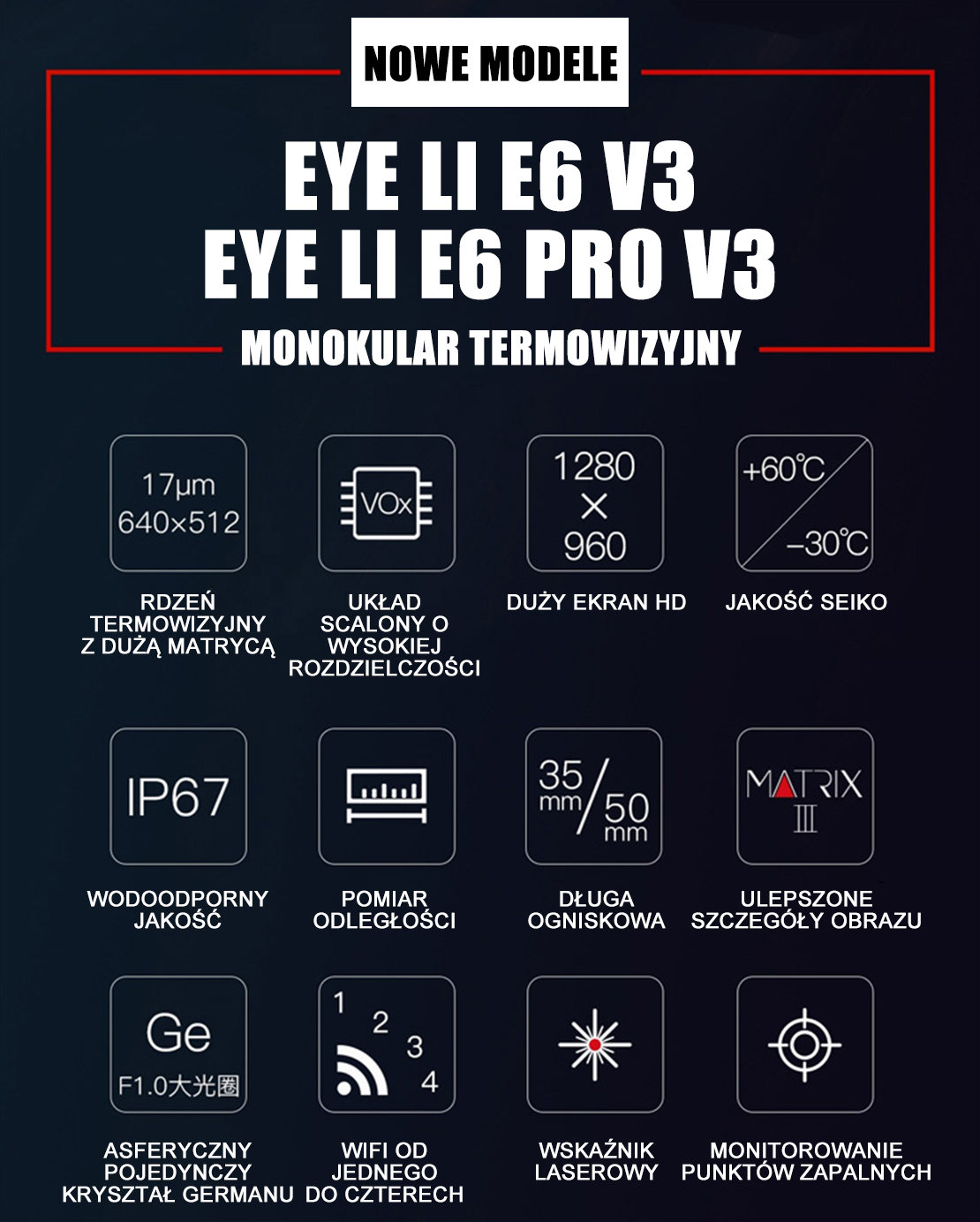 Seria Eye III E6 V3 umożliwia korzystanie ze szczegółowej technologii obrazowania termicznego, aby łatwiej lokalizować cele w ciemności. Seria Eye III sprawdza się znakomicie w tym zakresie temperatur.