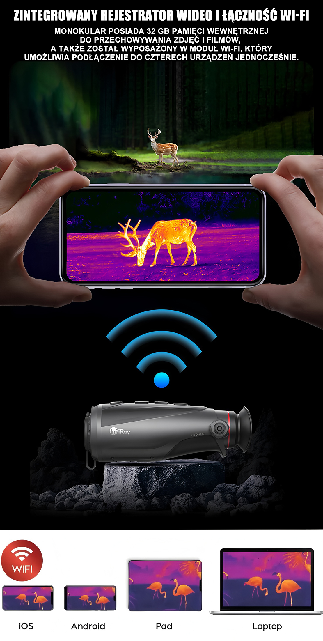InfiRay ma wbudowaną technologię obrazowania termicznego Ultra-Clear, która składa się z algorytmów oprogramowania specjalnie zaprojektowanych do niekorzystnych warunków pogodowych, takich jak deszcz, śnieg i mgła, co może poprawić ogólną przejrzystość i szczegółowość obrazów termicznych. Tryb Ultra HD zapewnia bardziej szczegółowy widok i silniejsze możliwości rozpoznawania obiektów.