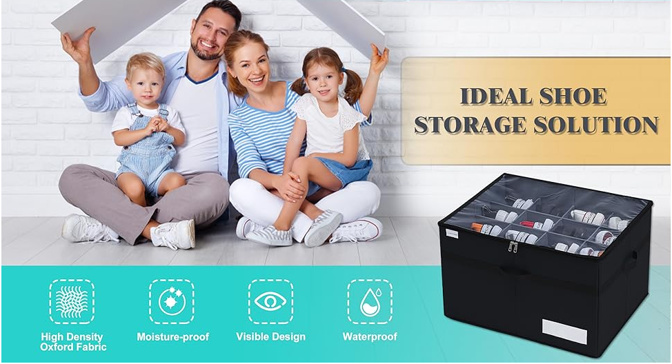 Organizador plegable para 16 pares de zapatos, caja transparente con soporte.